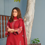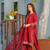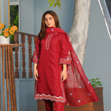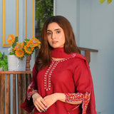 Noor-e-Rang Fancy 3PC Embroidered Khaddi Net Mehroon Colour