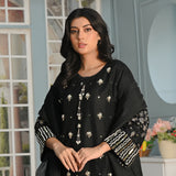 Rang-e-Hunar Fancy 3PC Handmade Embroidered Khaddi Net Black Colour